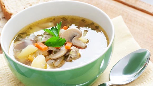 (Foto: markiza.sk)PRÍSADY: 1,5 l vývaru z kostí, 50 g sušených hríbov, 200g mrkvy, 150 g krupice, 1 vajce, 2dl mlieka,soľ, petržlenová vňať. Do predvareného vývaru pridáme uvarené hríby, nakrájanú mrkvu a krupicové halušky.